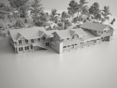 Une surélévation du garage accueille 5 nouvelles chambres prolongées de balcons, et les 10 chambres existantes sont recomposées en 6 entités intégrant des salles de bains. Comme à l’origine, chacun des 3 plateaux de chambre est accessible par un escalier extérieur en bois.