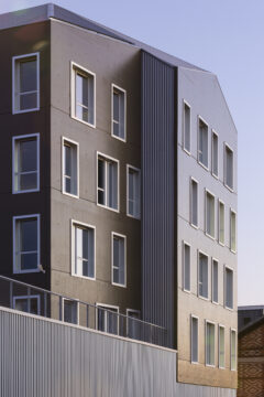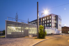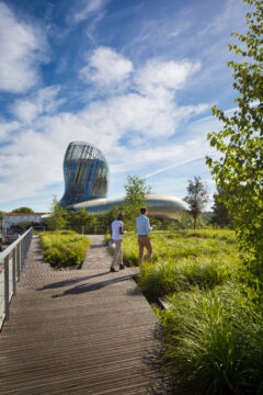 En bord de Garonne, à l’entrée des vannes, le site du projet offre une vue panoramique exceptionnelle sur le fleuve et la façade XVIIIème des docks de Bordeaux. L’immeuble de bureaux, ici édifié pour le groupe Cdiscount, s’inscrit dans ce territoire en courbe, à la jonction entre la Garonne et le chenal d’entrée du bassin à flot.