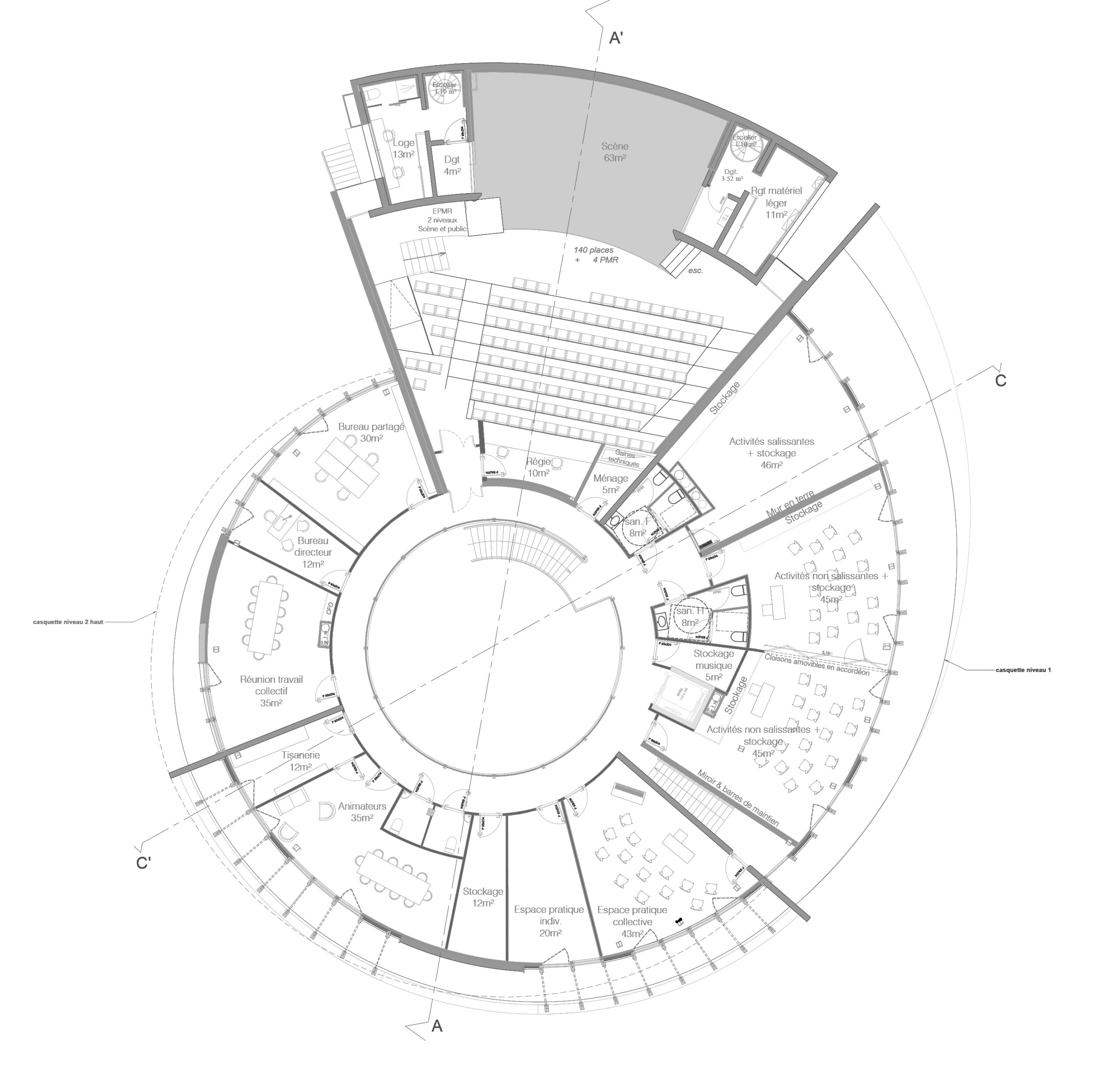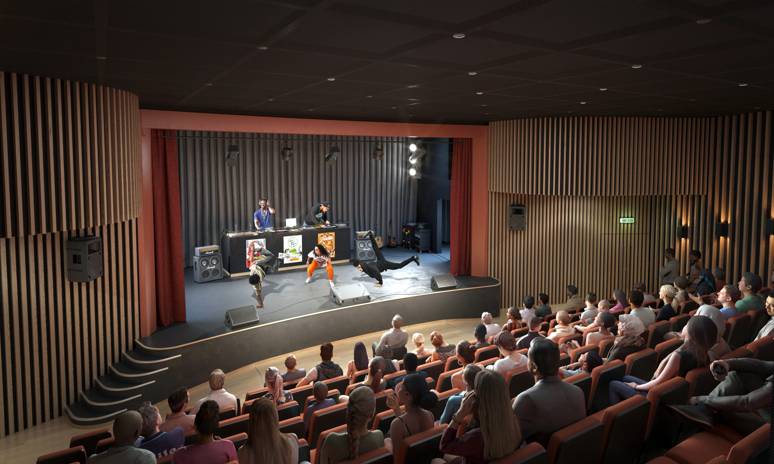 La salle de spectacle est rénovée sans modification structurelle lourde, mais profondément transformée dans ses ambiances, son acoustique et son ergonomie, afin de devenir un outil performant pour les pratiques artistiques amateurs et professionnelles.