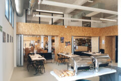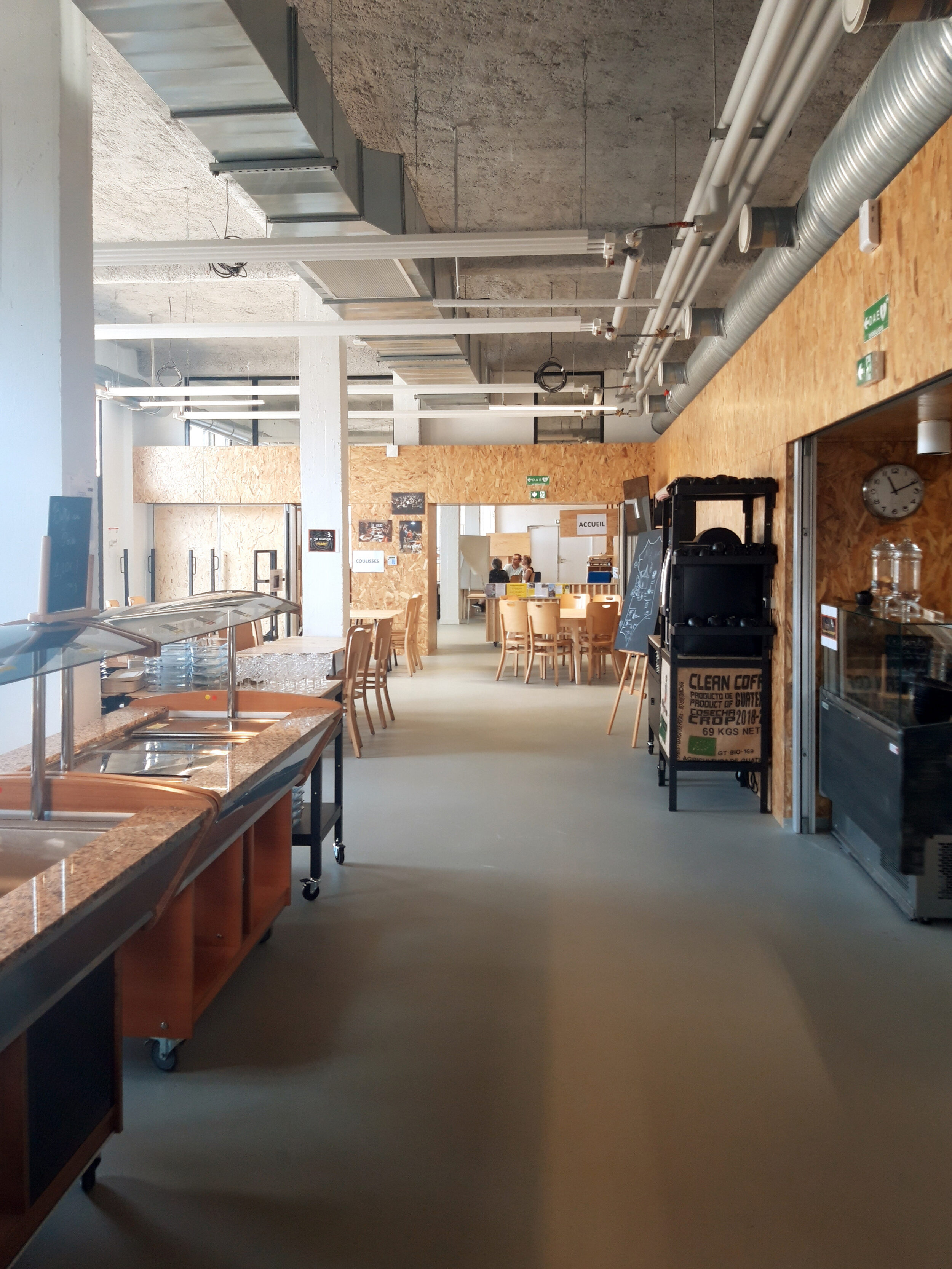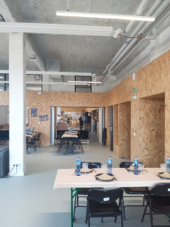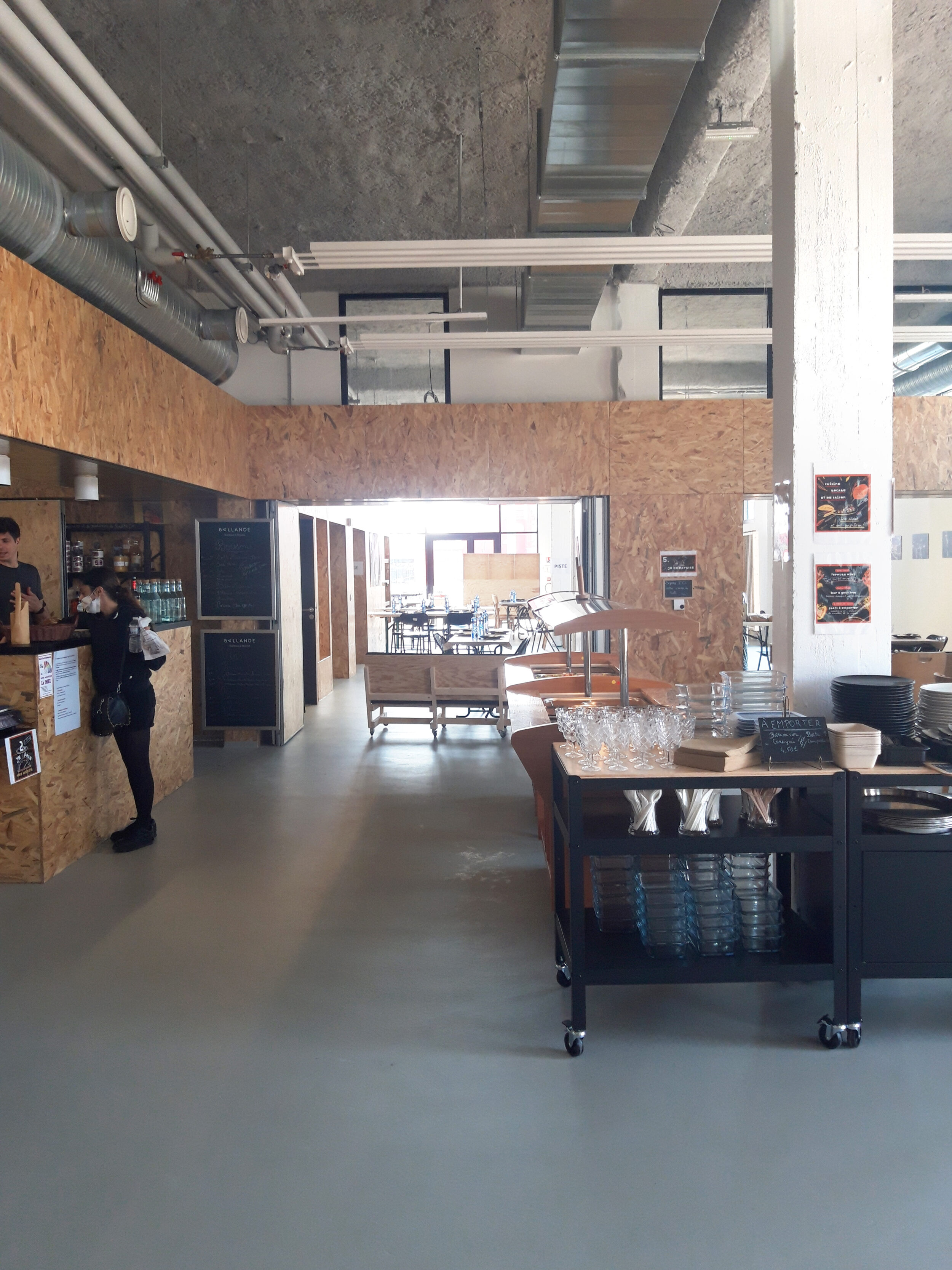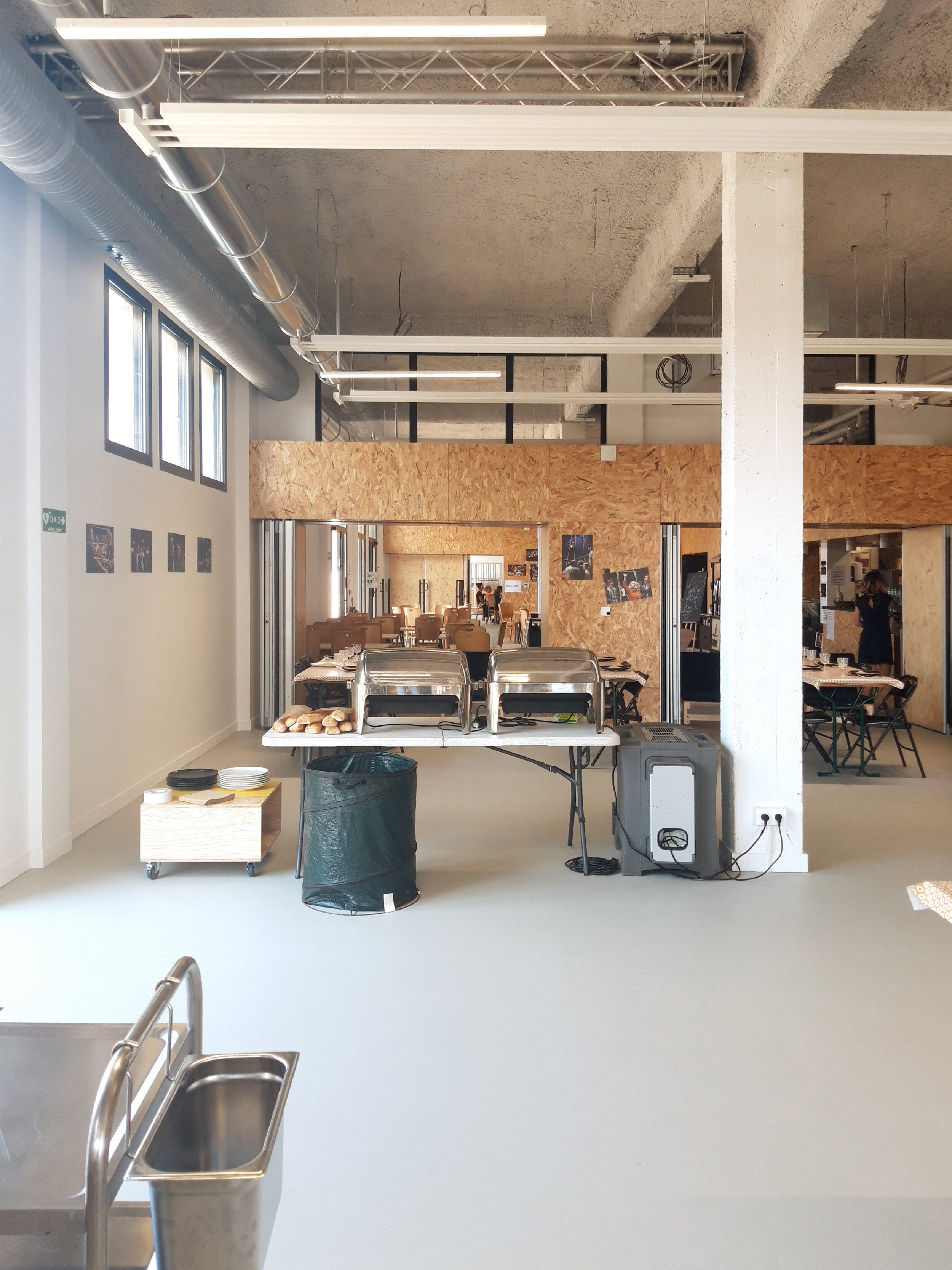 La proposition est le réaménagement du plan intérieur en libérant la surface et en profitant d’un espace généreux. La hauteur sous dalle du rez-de-chaussée est de 4.25 m, offrant un volume de 45 m de long sans interruption. Le programme inclut les services Jeunesse & Culture de la Municipalité et un espace de restauration au centre de la halle. L’espace est divisé en deux entités distinctes : l’espace administratif et l’espace central. Le plateau est partagé pour des usages communs, tout en conservant des bureaux dédiés à chaque service.