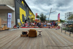 Sur le site de Terres Neuves, la place des musiques occupe une position centrale. Elle est bordée par des bâtiments sur 3 cotés, le 4e étant ouvert sur le passage du tramway. Ces bâtiments, initialement dépôts de médicaments pour l’armée, conservent leur géométrie orthogonale avec une structure en poteaux-poutres. Ils se développent sur 2 niveaux et présentent des volumes semblables dans leur architecture, et leurs dimensions.
