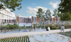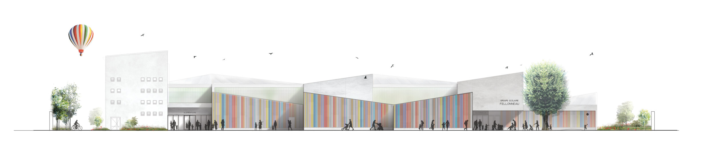 Entièrement transformé dans son image et dans son fonctionnement, le nouveau Groupe Scolaire Fellonneau offre à ses jeunes usagers un équipement chaleureux et appropriable, dont la polychromie, le découpage morcelé des volumes constituent une mise en scène de l’école sur les nouveaux parcours piétonniers renouvelant le maillage du quartier.