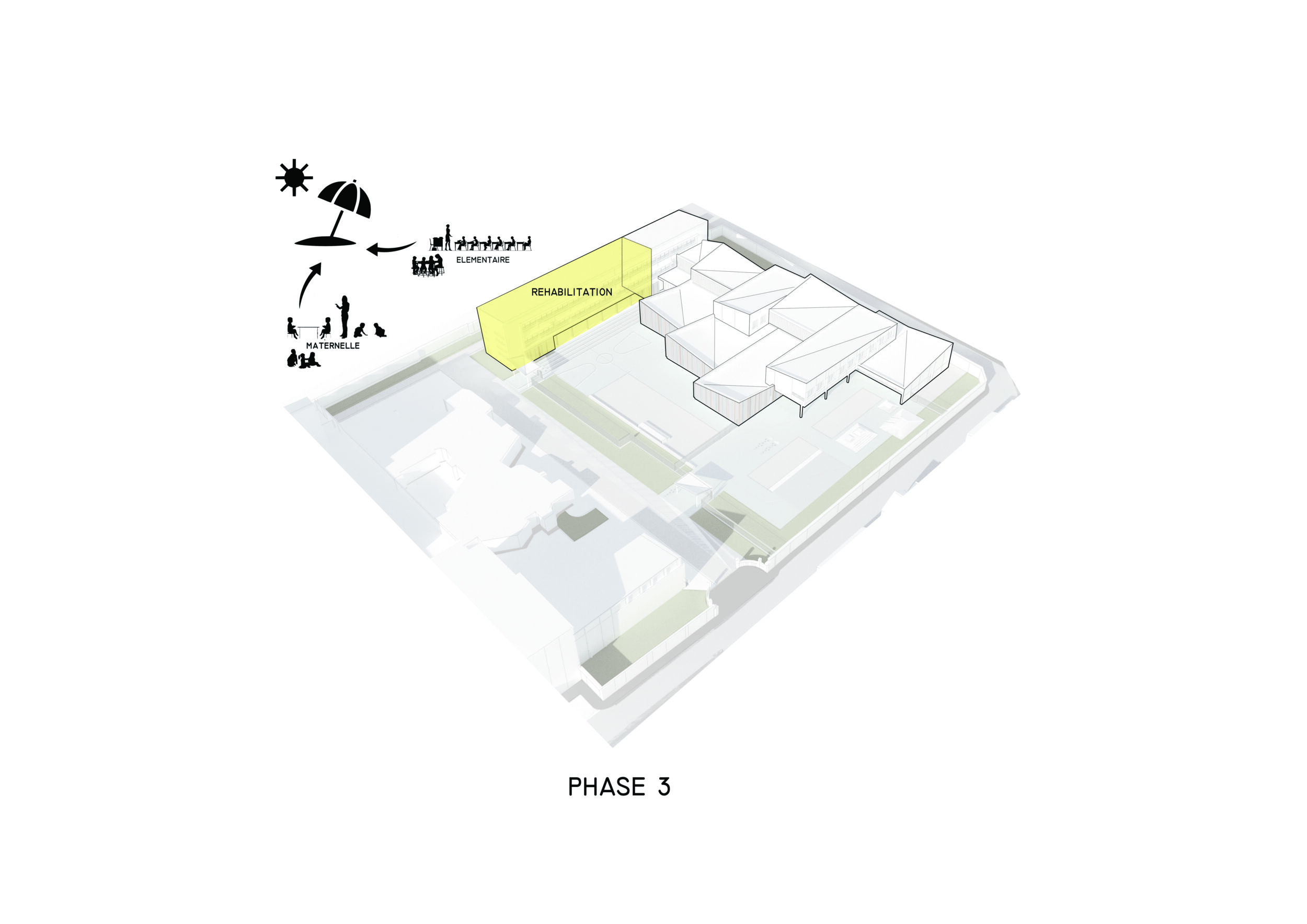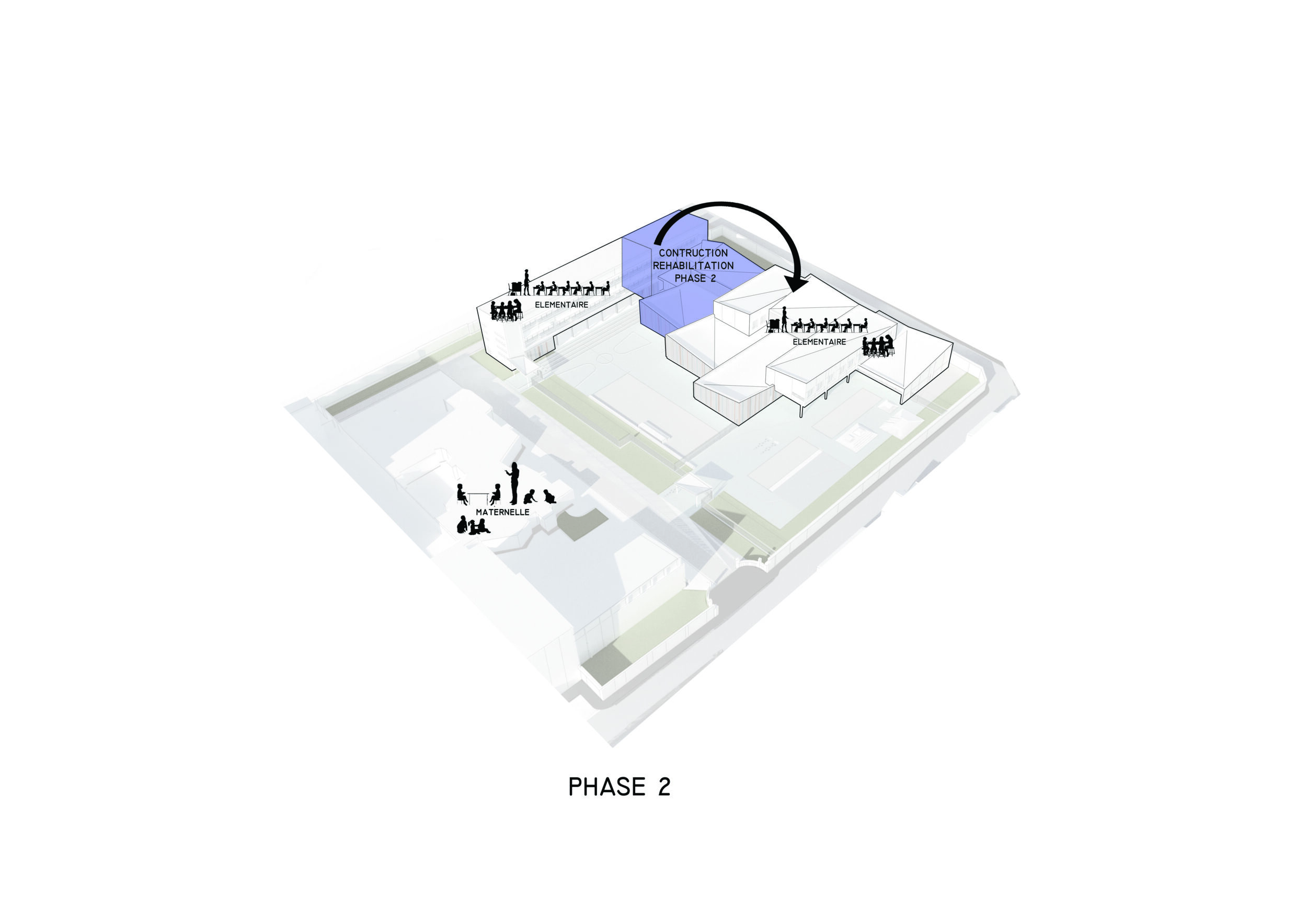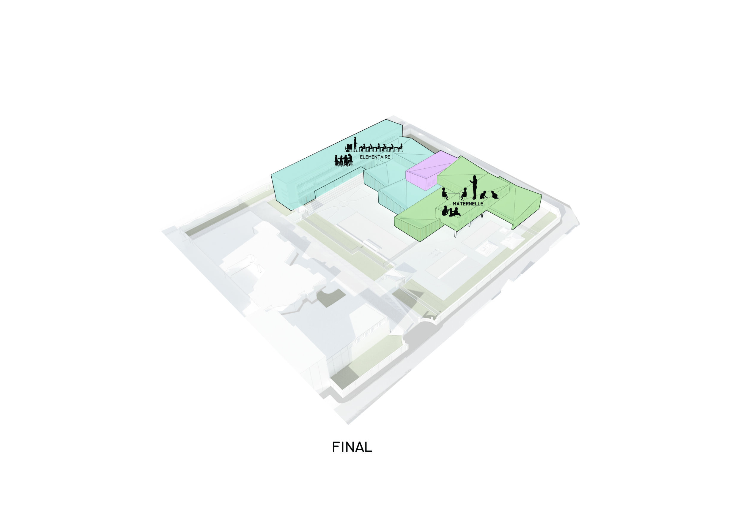 L’ensemble de l’élémentaire s’implante principalement dans le volume existant.