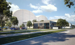 Au-delà de la maîtrise des structures complexes de grande dimension, le développement d’un tel site industriel repose en grande partie sur la conception des portes principales. Les dimensions d’ouverture sont de 84m par 50m de hauteur, pour une largeur utile de 75m. Les ventaux sont constitués d’une ossature primaire réalisée en montants en profilés PRS (1950x600mm). Une ossature secondaire en profilés formés à froid (pannes Z) permet la fixation du bardage vertical simple peau.