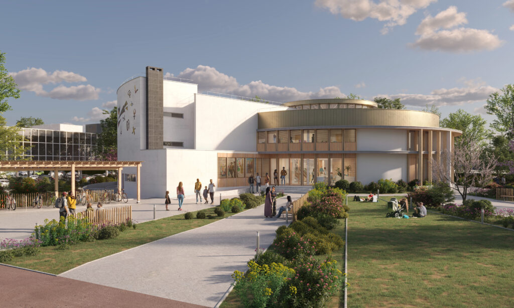 Le nouveau siège social de Gaz de Bordeaux s’implante sur le carrefour de la Place Ravesies. La problématique essentielle est celle de la représentation de l’image de marque d’une société dans un site donné. Les façades latérales, donnant sur les boulevards sont traitées en une mosaïque de panneaux de verre émaillé et de châssis vitrés placés soit au nu extérieur, quand ils sont fixes, soit au nu intérieur de la façade, quand ils sont ouvrants. Un principe de volets mobiles vient compléter cette composition aléatoire qui, juxtaposée aux voiles de béton brut, forme une peau animée et colorée. La façade donnant sur la place bénéficie d’un traitement plus complexe. Une peau en éléments de verre posés en écailles filtre et tamise la façade en retrait, en raison de l’orientation plein ouest et très dégagée de l’ensemble. De nuit, une mise en lumière réalisée par des diodes colore cet écran urbain sur la base d’une programmation informatisée.